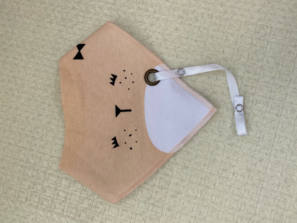 Each bib measures 7 x 15 x 13 inches (L x W x H) and comes in a choice of beige, pink, yellow, green, and grey. Each color features a different friendly animal face.